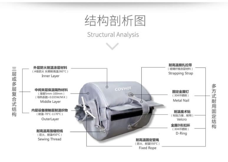 可拆卸保溫套是一種由新型環(huán)保材料制成的工業(yè)設(shè)備保溫產(chǎn)品,廣泛應(yīng)用于食品行業(yè)、制藥行業(yè)、輪胎硫化制造、工業(yè)窯爐、生活民用、車輛排氣系統(tǒng)、柴油及燃?xì)鈩?dòng)力、鐵路火車、航空領(lǐng)域、船用產(chǎn)品、石油行業(yè)、電廠電站、鋼鐵冶金等領(lǐng)域。