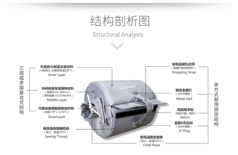 可拆卸截止閥保溫套可以滿足不同領域的柔性保溫應用需求。可以很方便進行拆裝操作,可重復多次使用,以最大化其經濟效益,降低熱損耗。對于一些表面形狀特殊、復雜的設備隔熱(防火),柔性隔熱防火)套也能顯示其獨特的優(yōu)勢。經測試計算,采用本產品后,通常可節(jié)約熱能達90%以上。有些用戶短投資回收期僅為6個月左右。